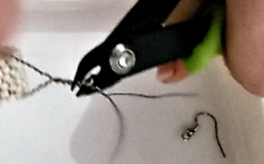 However, since we are using a fishhook, the wire loop should be perpendicular to the roll hole, as depicted in the finished image. Then all you need to do is attach the earring hook facing the back of the roll.